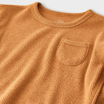 Make your cute baby look even more adorable with this 2-Piece Cozy Thermal Sweatshirt & Jogger Pants Set from Cat & Jack™. The two-piece outfit set includes a long-sleeve pullover sweater and matching jogger pants featuring a waffle knit pattern. Crafted from a mix of rayon, recycled polyester, and spandex waffle fabric, this thermal outfit set offers breathable all-day comfort. The joggers feature an elastic waistband for easy pull-on wear.