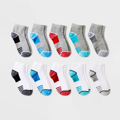 Introducing our Boys’ 10pk Striped Lightweight Ankle Socks- Cat & Jack™, a perfect combination of style and comfort for your little boy. These ankle socks feature a stylish striped pattern, adding a touch of sophistication to his wardrobe. Made from a lightweight and breathable fabric, these socks offer enhanced comfort and ventilation, ensuring his feet stay cool and fresh throughout the day. With these Boys’ 10pk Striped Lightweight Ankle Socks- Cat & Jack™ see him step out in style.