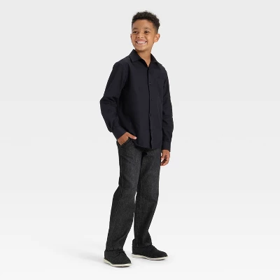 Your kid will love the cool comfort and classic style of this Long-Sleeve Button-Down Dress Shirt from Cat & Jack™. This long-sleeve shirt is made of soft recycled polyester-cotton blend twill fabric to let them breeze through the day in comfort. The long sleeves with buttoned cuffs, collared neckline and chest patch pocket add touches of classic style, while the simple design is easy to pair with a variety of bottoms.