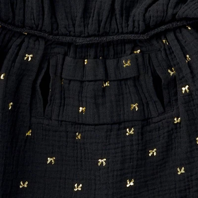 Make a pretty and comfy addition to your darling’s closet with the 2-Piece Adaptive Long-Sleeve Dressy Top and Bottom Set from Cat & Jack™. Specially designed for sensory needs, this two-piece outfit set features flat seams to eliminate abrasion against the skin. Seams are intentionally chosen to withstand high level activity without irritating the skin. Garment care and size information is provided through heat seal labels, not itchy tags. This top and bottom set has been designed with a hidden pocket to secretly and securely store devices or small objects. Plus, the full elastic waistband on the pants makes them easier to wear by eliminating closures that can be difficult to open or close. Made from 100% cotton for soft and breathable comfort, both pieces are designed in black with golden bow print for sweet style.
