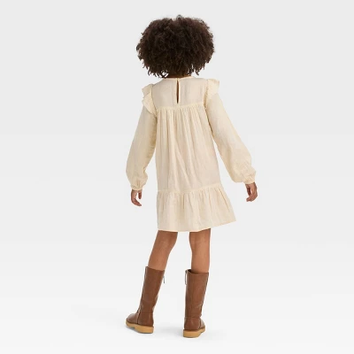 Your kid will be ready for summer days in cool, comfy style with this Long-Sleeve Woven Dress from Cat & Jack™. Falling at the knee, it features ruffle detailing on the long sleeves, smocked upper, and a front and back yoke with tiered hem for a dressier look, while the keyhole back button closure makes dressing easy. The lightweight lawn fabric with cotton lining offers comfy all-day wear, and the side pocket adds functional flair.
