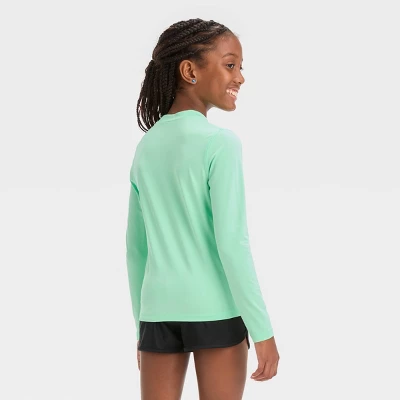 Whether they’re running along the shore or enjoying a pool party, this Rainbow Printed Rash Guard from Cat & Jack™ is sure to be your kid’s favorite pick for waterside activities. This long-sleeve rash guard is made from a soft and stretchy fabric to offer them comfort in or out of water, while the UPF 50+ material helps keep their skin shielded from the sun. Falling below the waist, this crewneck rash guard features a tiny rainbow print on the chest a solid background, making it a fun pairing with different swim bottoms.