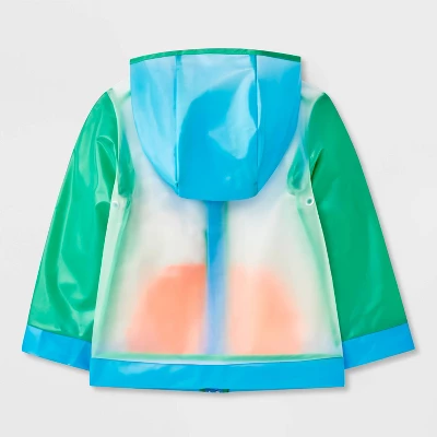 Elevate their outerwear collection with this Colorblock Clear Rain Jacket from Cat & Jack™. This clear colorblock jacket is crafted from 100% polyurethane film fabric to help keep them dry and comfortable, along with an attached hood for added coverage. Tailored in a casual fit, this rain coat comes with a front full-length zipper for easy on and off and boasts a banded hem for a snug fit. Plus, front kangaroo pockets provide space for stashing small items.