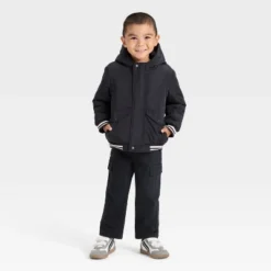 Toddler Boys’ Varsity Striped Heavyweight Puffer Jacket – Cat & Jack™ Black